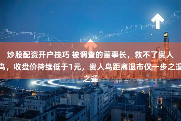 炒股配资开户技巧 被调查的董事长,救不了贵人鸟,收盘价持续低于1元,贵人鸟距离退市仅一步之遥